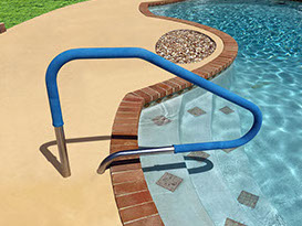 CONFIDENTIALITY NOTICE: All photos, artwork and copy used in this website are the private confidential property of Outdoor Solutions Inc®, and are therefore intended solely for the use and benefit of Outdoor Solutions Inc®. If you are a competitor or a customer of competitive products, you are hereby notified that any use of photos, artwork and copy, belonging to the Outdoor Solutions Inc®. website, is strictly prohibited, and may result in legal liability on your part. • Four (4) Sizes to fit most handrails - (4, 6, 8 and 10ft) • Four (4) colors to compliment your pools decor • Reduces slippery handrails and the risk from falling • Eliminates HOT handrails from burning hands • Soft... Comfortable... Easy to hold on to! • Covers the “UGLIES”... cover those pitted handrails RAIL-GRIPS