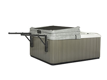CONFIDENTIALITY NOTICE: All photos, artwork and copy used in this website are the private confidential property of Outdoor Solutions Inc®, and are therefore intended solely for the use and benefit of Outdoor Solutions Inc®. If you are a competitor or a customer of competitive products, you are hereby notified that any use of photos, artwork and copy, belonging to the Outdoor Solutions Inc®. website, is strictly prohibited, and may result in legal liability on your part. • Simple... Easy... Economical • Fits any size spa • Saves wear and tear on your spa cover • Heavy duty rollers for smooth removal of your spa cover • Folds down for convenience when not in use SLIDER®